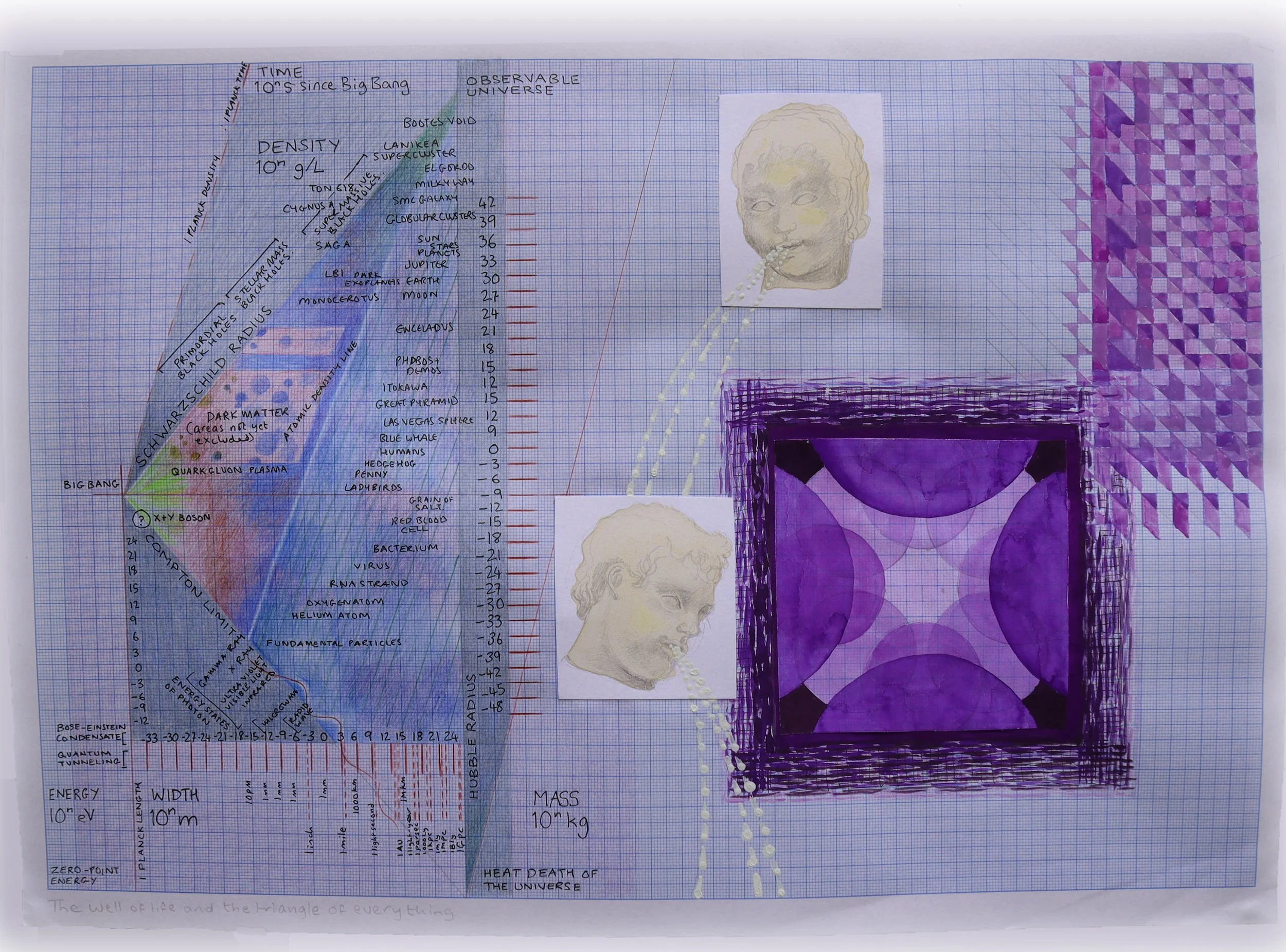 Images: Josephine Manby The well of life and the triangle of everything (January 2025) gouache, acrylic, colour pencil, ink and collage on graph paper